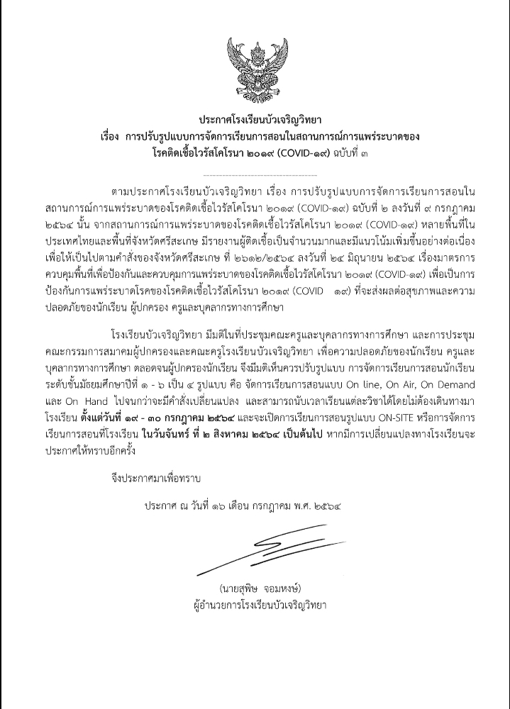 ประกาศโรงเรียนบัวเจริญวิทยา ฉ.3