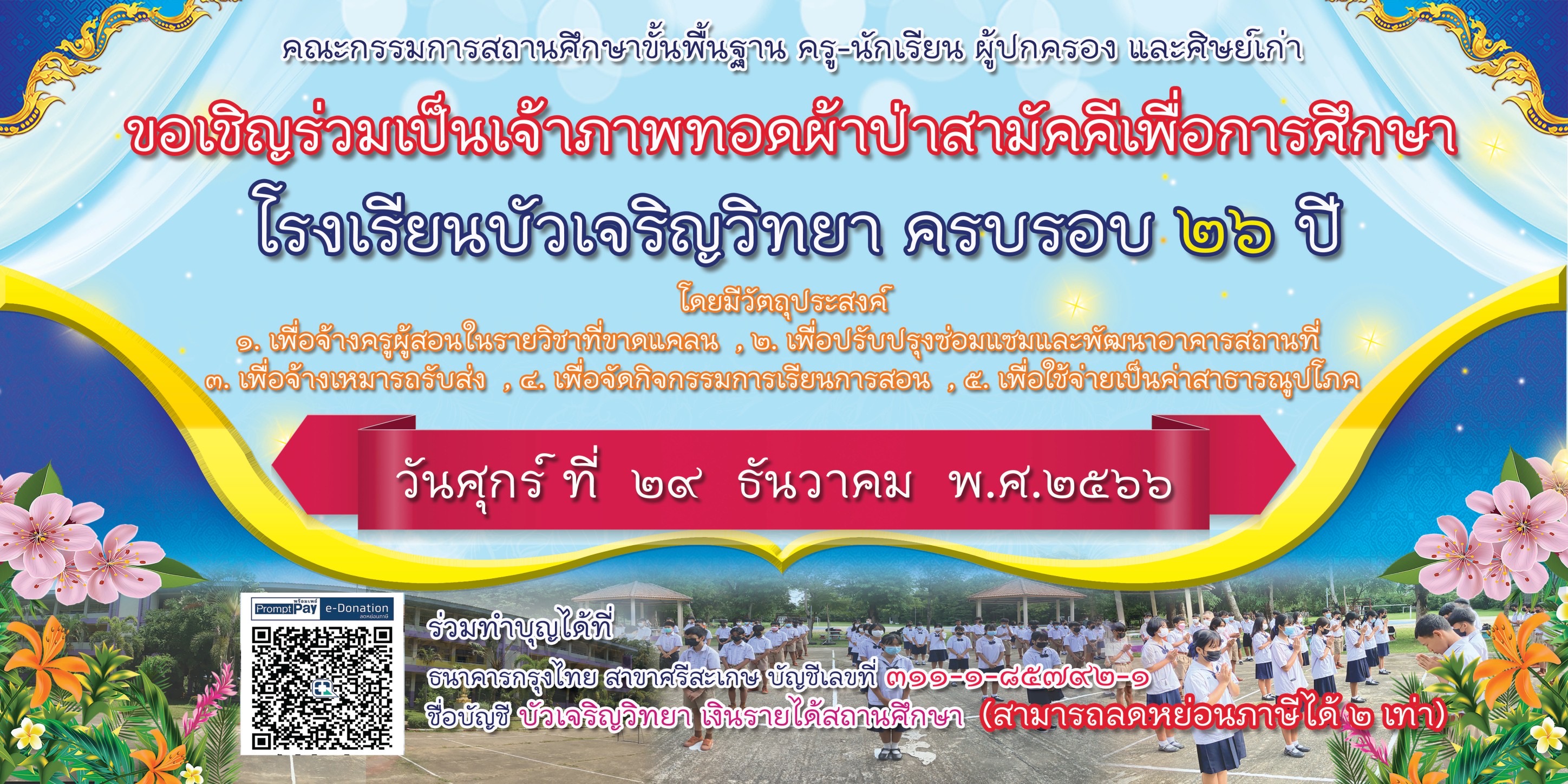 ขอเชิญร่วมเป็นเจ้าภาพทอดผ้าป่าสามัคคีเพื่อการศึกษา